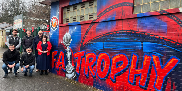 Last week we were thrilled to unveil a new mural celebrating Aldershot Town Football Club’s unforgettable FA Trophy victory outside the EBB stadium with some of the fans who have helped to make it possible.